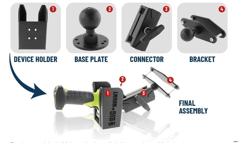 The modular BIGmount mounting system was specifically developed for professional applications in industrial, logistics, and vehicle-based environments. It enables highly flexible, robust, and scalable equipment mounting. The system's modular design comprises four core components that can be freely combined depending on the requirements.